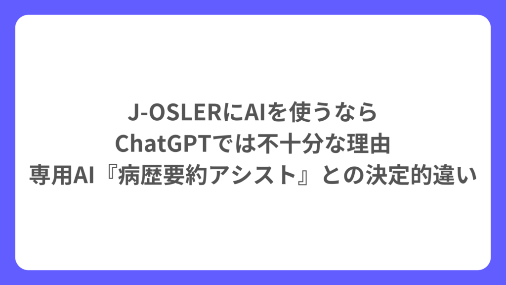 J-OSLERにAIを使うなら、ChatGPTでは不十分な理由|専用AI『病歴要約アシスト』との決定的違い