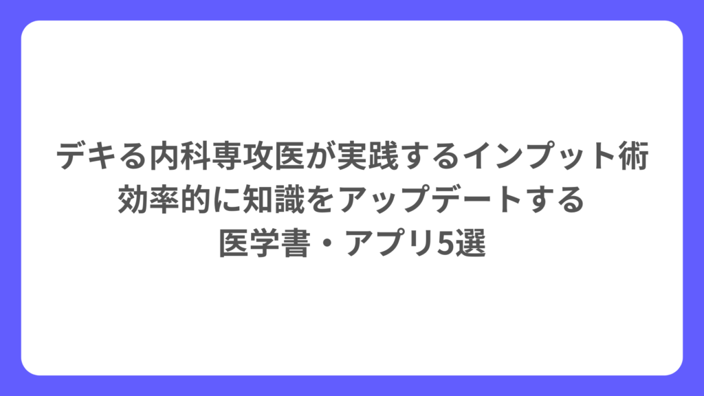 デキる内科専攻医が実践するインプット術|効率的に知識をアップデートする医学書・アプリ5選