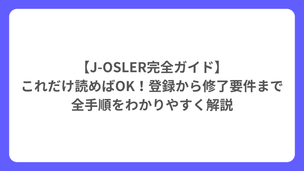 【J-OSLER完全ガイド】これだけ読めばOK!登録から修了要件まで全手順をわかりやすく解説