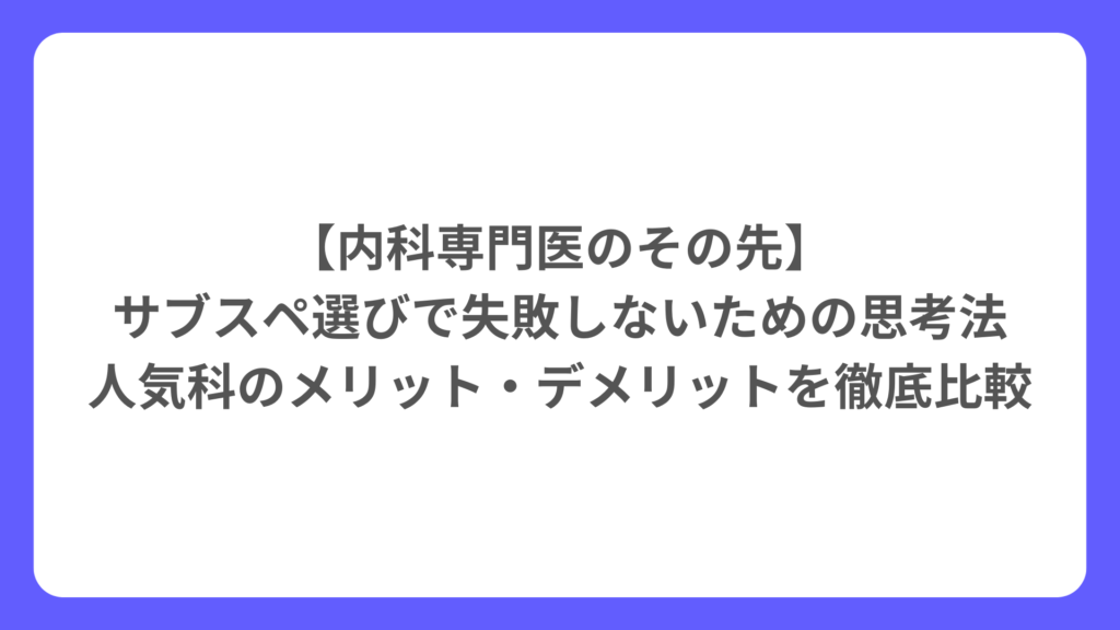 【内科専門医のその先】サブスペ選びで失敗しないための思考法|人気科のメリット・デメリットを徹底比較