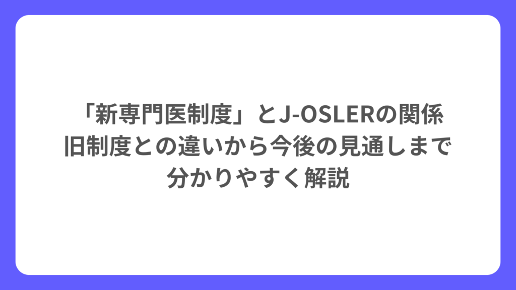 今さら聞けない「新専門医制度」とJ-OSLERの関係|旧制度との違いから今後の見通しまで分かりやすく解説
