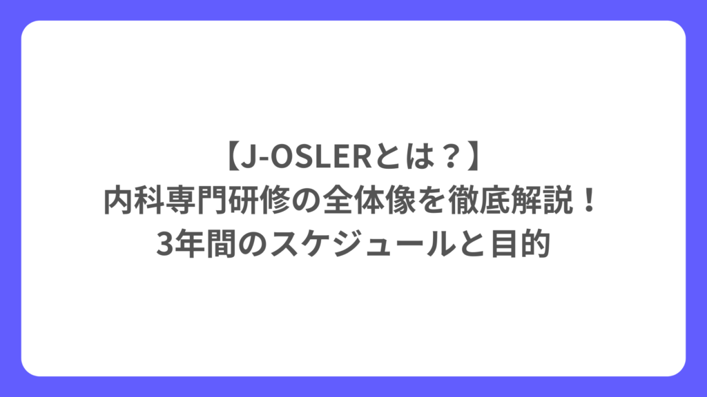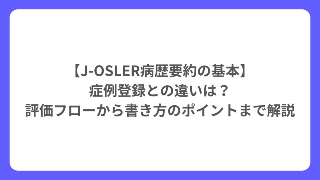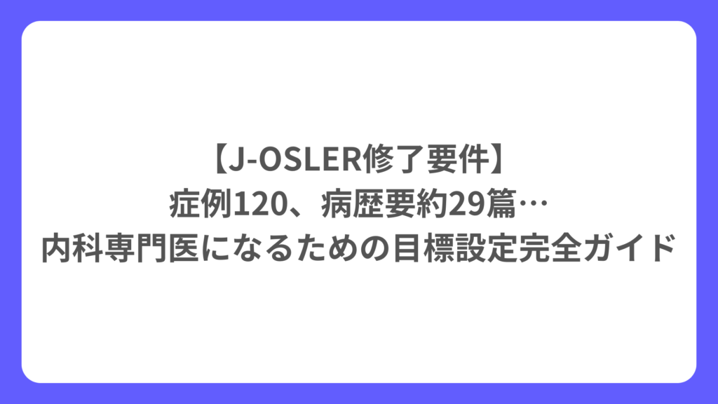 日々の臨床業務に追われる中で、「J-OSLER」という言葉に、漠然とした不安やプレッシャーを感じていませんか? 「J-OSLERって、一体何をすればいいんだろう?」 「とにかく大変だって聞くけど、自分に乗り越えられるだろうか…」 「先輩たちが夜遅くまで書...