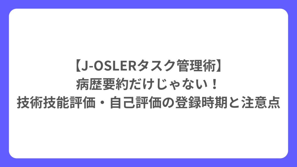 【J-OSLERタスク管理術】病歴要約だけじゃない!技術技能評価・自己評価の登録時期と注意点