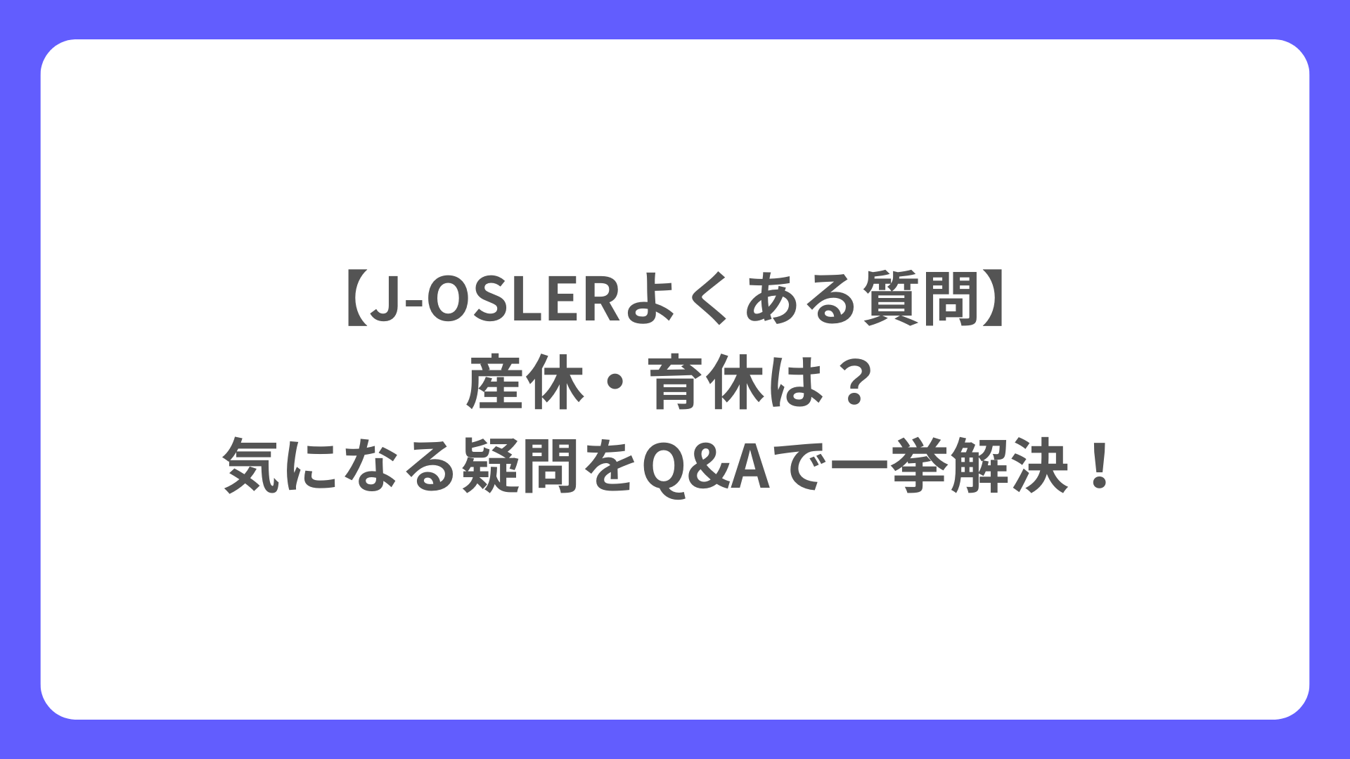 【最重要】J-OSLERと産休・育休の両立は可能?結論:できます!